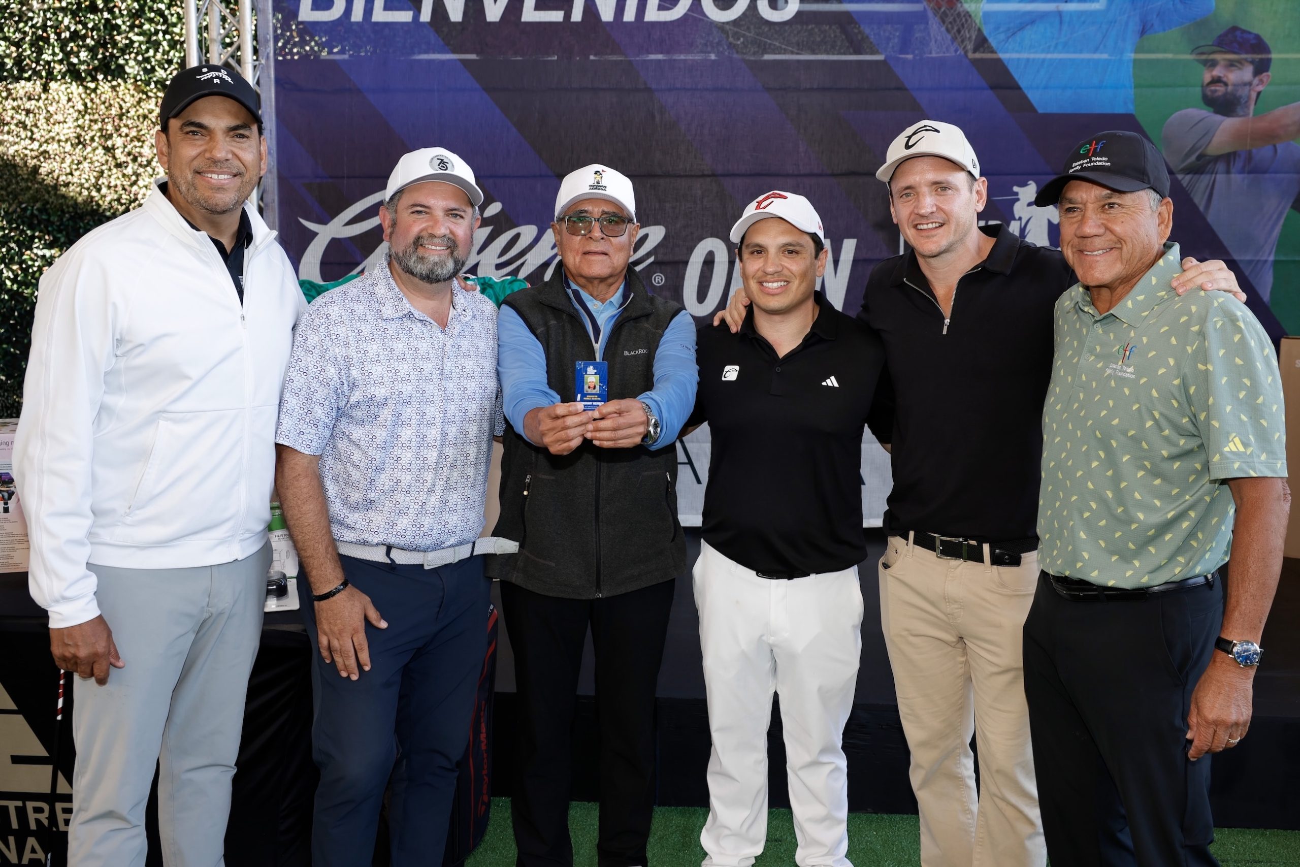 En el marco del ProAm del Caliente.mx Open se vivió uno de los momentos más emotivos de la jornada, cuando Esteban Toledo, cuatro veces ganador del PGA Tour Champions, otorgó la segunda tarjeta de miembro honorario a la leyenda del golf mexicano Ernesto Pérez Acosta, Campeón Mundial y dos veces campeón del Abierto Mexicano de Golf.